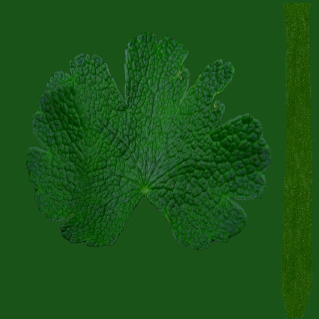 While specifically a geranium leaf texture, the general characteristics of this asset make it versatile for various botanical applications. It can be adapted for other similar broadleaf plants or used as a base for creating unique foliage types. Its clean, isolated presentation allows for easy integration into different 3D software and workflows.
