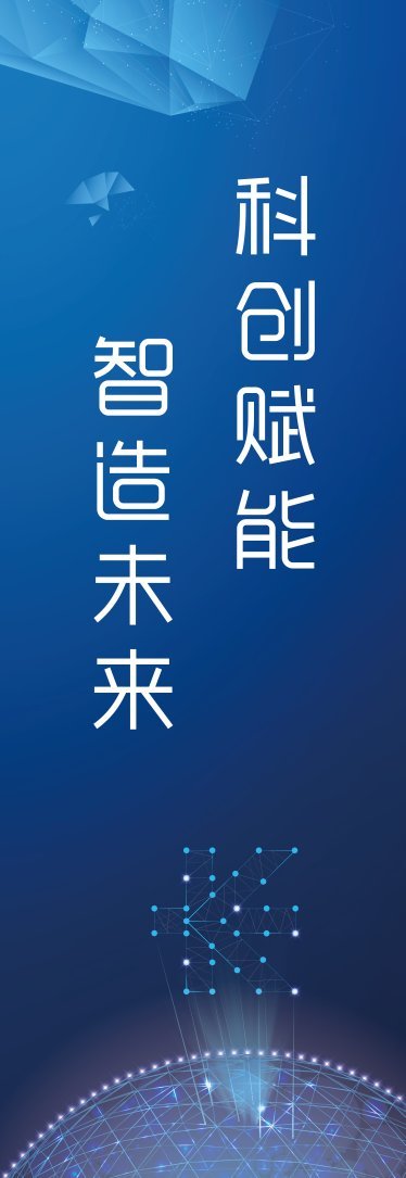 - Typography: The Chinese characters, which translate to “Scientific and Technological Innovation Empowers, Intelligent Manufacturing Creates the Future,” are presented in a modern, clean typeface. This vertical alignment is culturally significant and adds an elegant touch, making the banner suitable for a global audience, particularly those engaging with Asian markets.